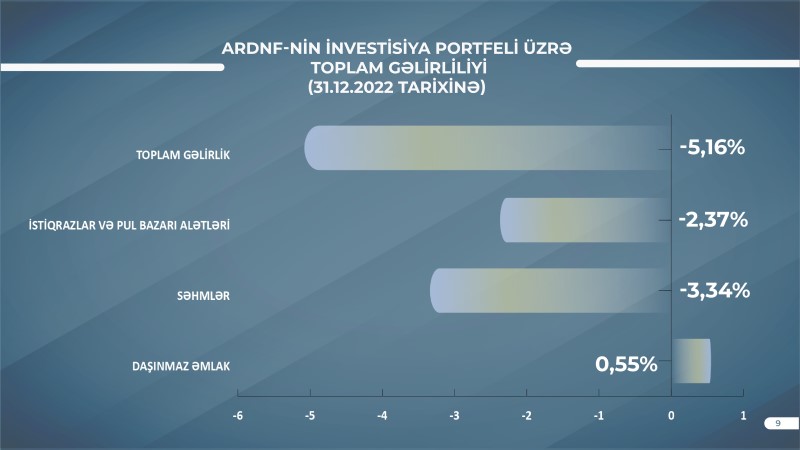 ADRNF-nin 2022-ci il üzrə investisiya fəaliyyətinin yekunları əlavədə təqdim olunur.