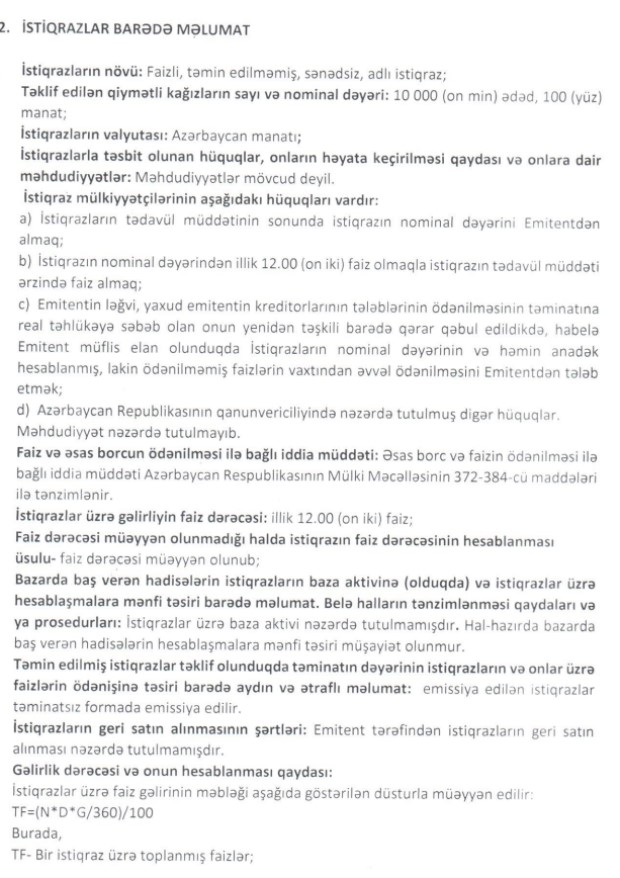 BOKT-dan 1 milyon manatlıq istiqraz - İNVESTORLARA 12 FAİZ GƏLİR TƏKLİF OLUNUR