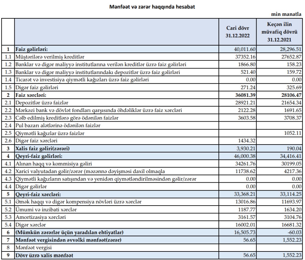 "Muğanbank" ASC 2022-ci il üzrə maliyyə göstəricilərini açıqlayıb.