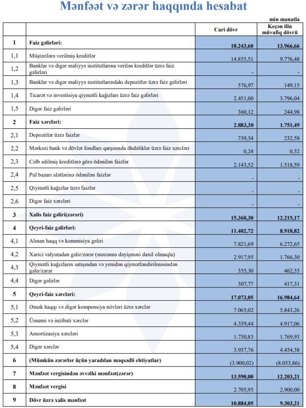 "AFB Bank"ın əməliyyat mənfəəti 2 dəfədən çox artıb