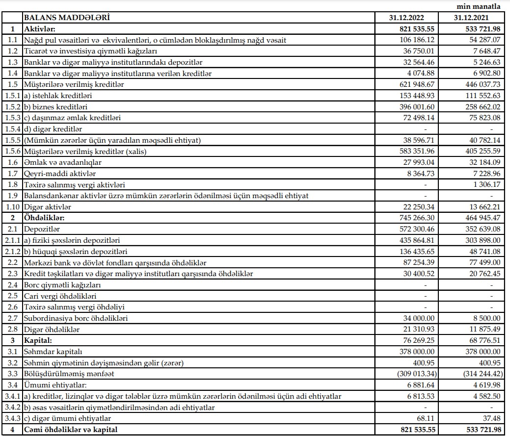 2021-ci ildə "Yelo Bank"ın xərcləri gəlirlərini üstələdiyindən 1 milyon 592 min manat əməliyyat zərəri yaranmışdı. Mümkün zərərlər üçün yaradılan məqsədli ehtiyatlardan azad olmuş 13 milyon 326 min manatın hesabına bank 11 milyon 733 min manat xalis mənfəət açıqlamışdı.
