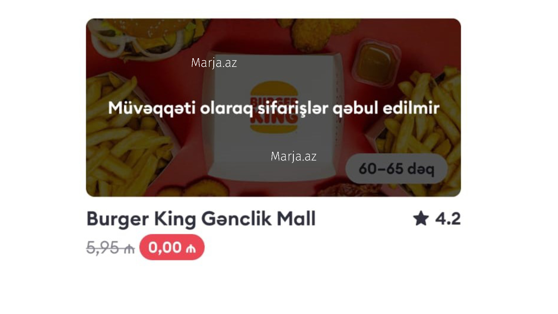 Eyni zamanda, "Bolt Food" çatdırılma xidməti də "Burger King" üzrə sifarişləri qəbul etmir.