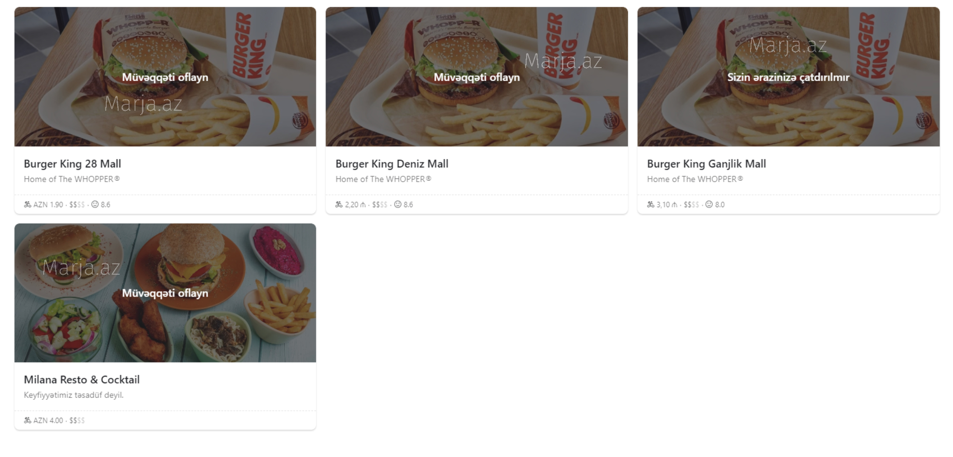Marja.az-ın araşdırmasına görə, "Wolt" çatdırılma xidməti də "Burger King" restoranları üzrə sifarişlərin çatdırılmasını qəbul etmir. Şirkətin saytında bu restoranlar "müvəqqəti oflayn" şəkildə göstərilir.