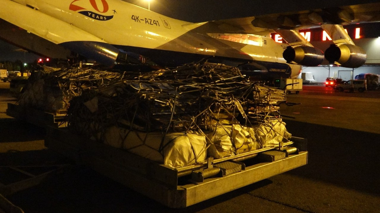 Hava nəqliyyatı ilə ümumilikdə 115 ədəd müxtəlif ölçülü çadır, 1448 ədəd ədyal, 140 ədəd çarpayı, 90 ədəd qızdırıcı, 300 ədəd masa, 1000 ədəd oturacaq, 2000 ədəd iplik dəsmal və digər ləvazimatlar göndərilib.
