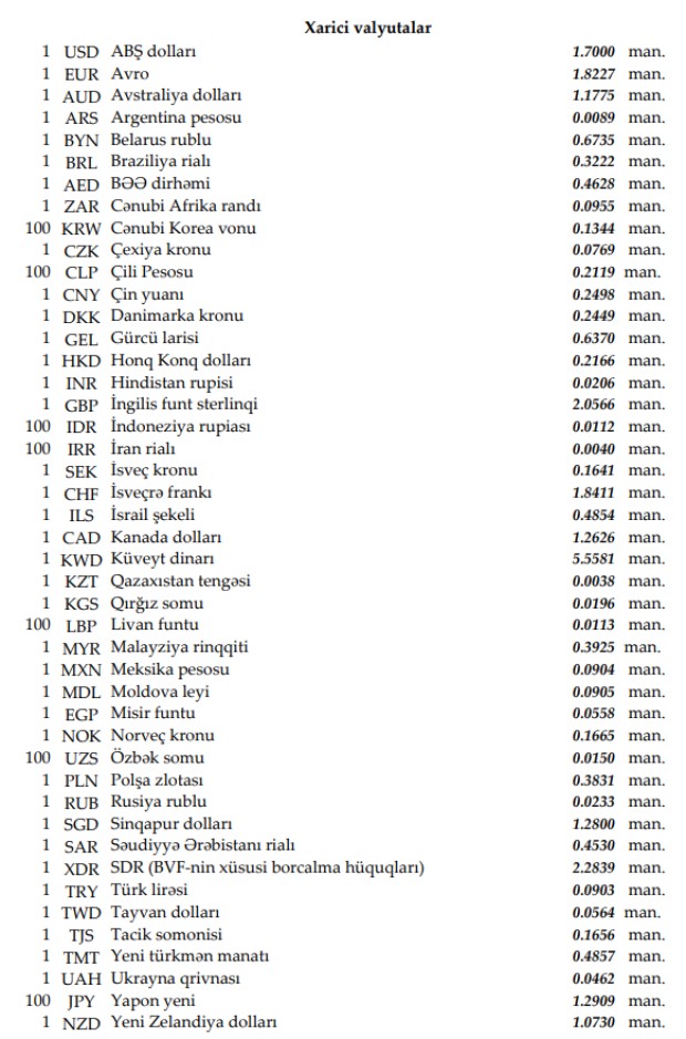Dolların bazar ertəsi üçün rəsmi məzənnəsi müəyyən olunub