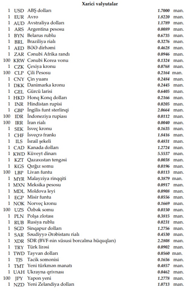 Dolların bazar ertəsi üçün rəsmi məzənnəsi müəyyən olunub