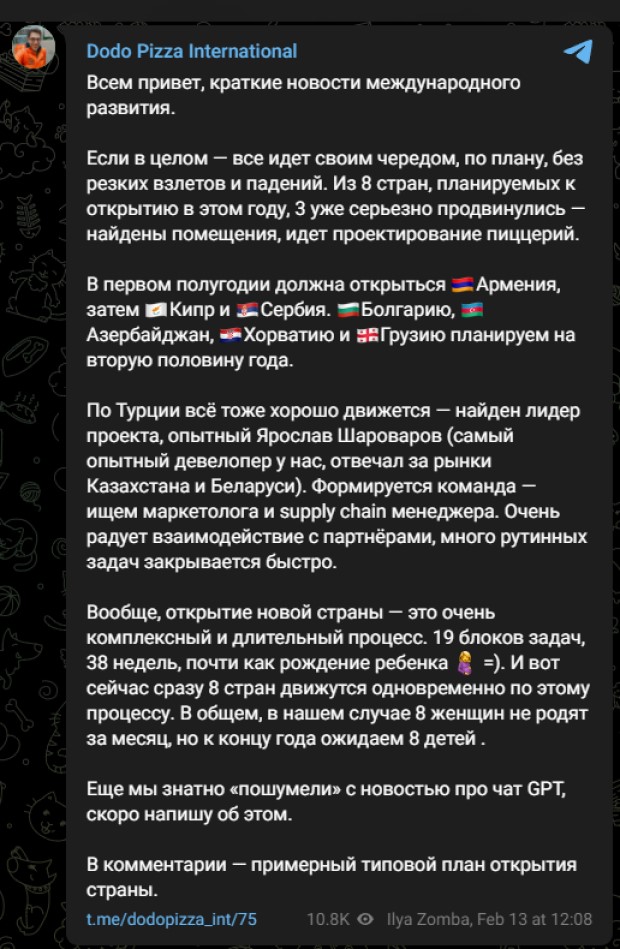 Rusiyanın “Dodo Pizza” pizza restoranlar şəbəkəsi 2023-cü ildə 8 yeni ölkədə, həmçinin Azərbaycanda restoran açmağı planlaşdırır.