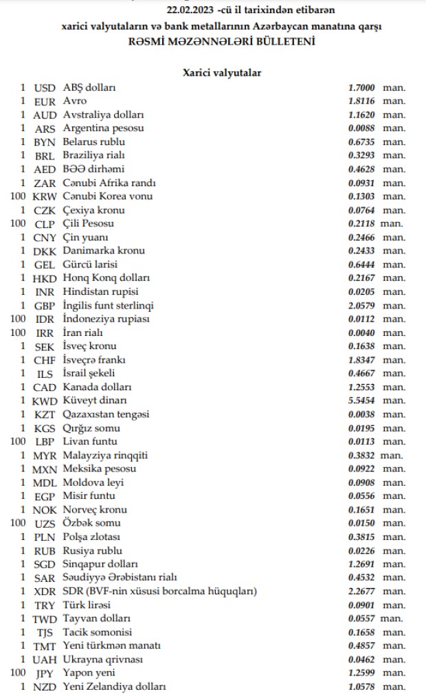Rəsmi məzənnələr açıqlandı