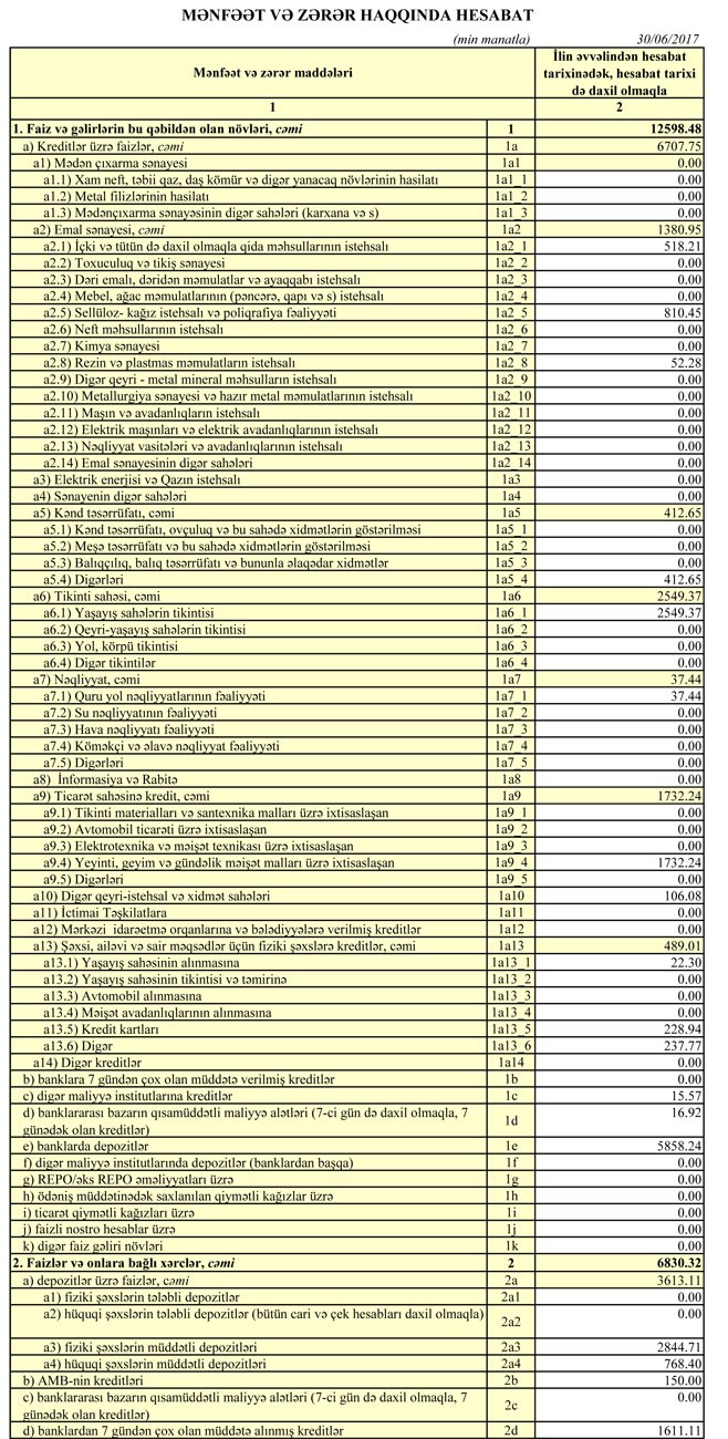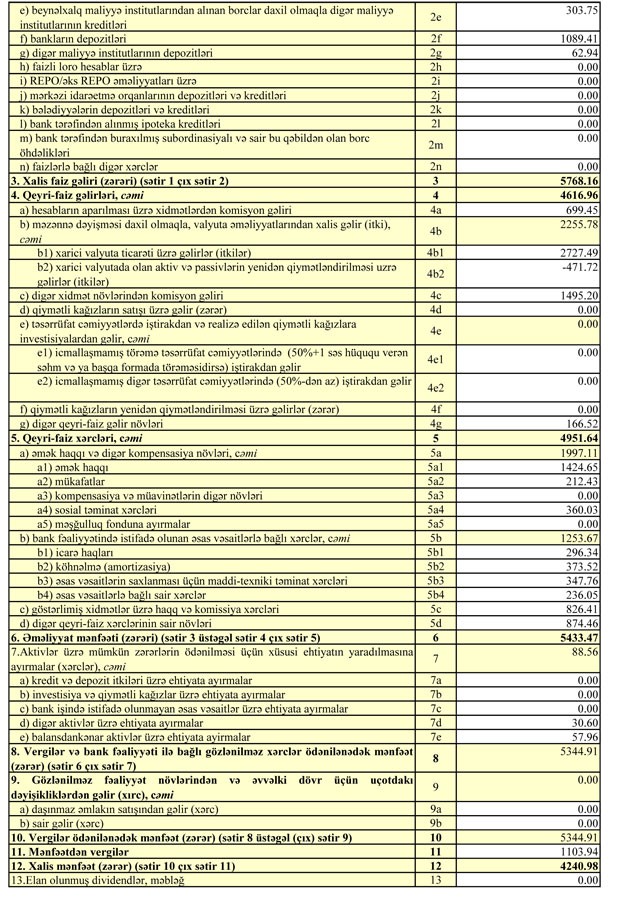 Müqayisə olunan dövrdə Bankın əməliyyat mənfəəti 5 milyon 494 min manatdan 5 milyon 433 min manata düşüb.
