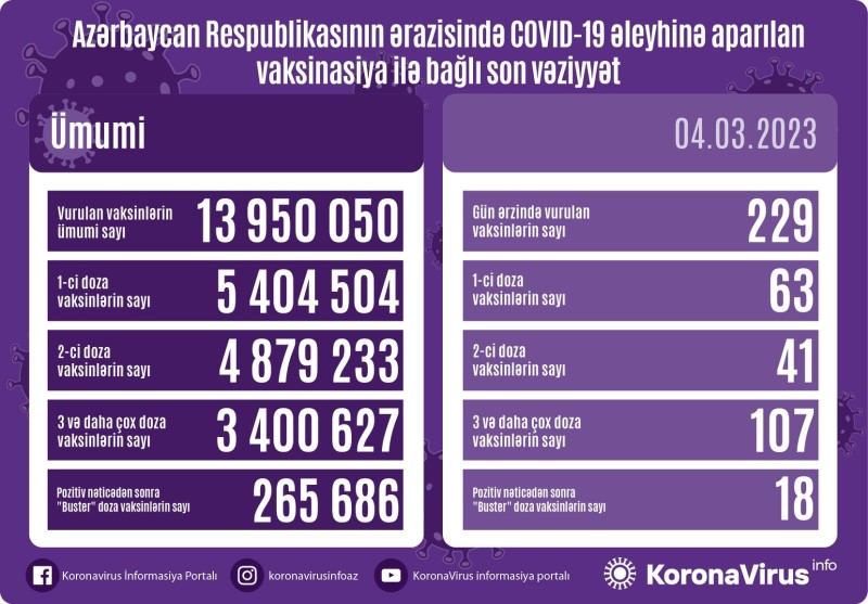 Azərbaycanda son sutkada 229 nəfər vaksinasiya olunub.