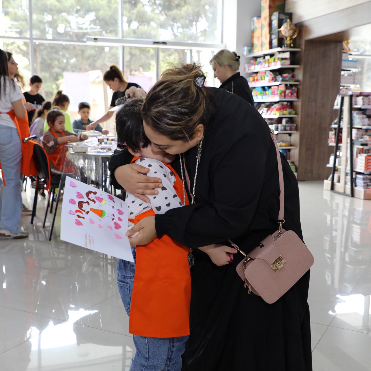 Uşaqlar təlimçilərin köməyi ilə kiçik əl işləri düzəldərək analarına olan sevgilərini göstərə biliblər.