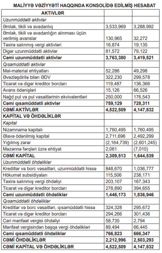 1,8 milyard manatlıq satış, 436 milyon manatlıq xalis mənfəət - DÖVLƏT ŞİRKƏTİ MALİYYƏ VƏZİYYƏTİNİ AÇIQLADI