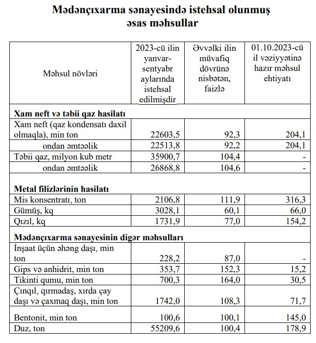 2023-cü ilin yanvar-sentyabr aylarında Azərbaycanda 3028,1 kq gümüş, 1731,9 kq qızıl istehsal edilib.
