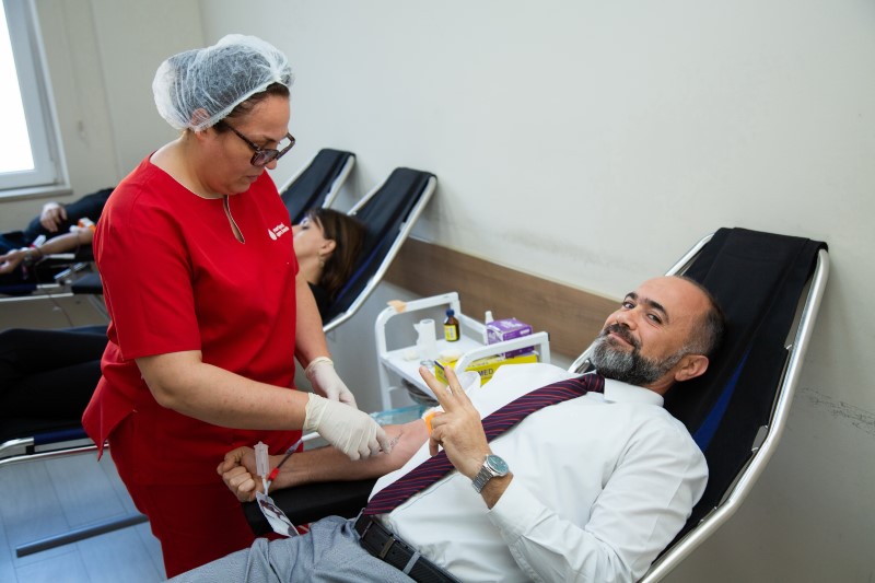 “Dəstək olaq, təbəssümlər çoxalsın!” şüarı ilə keçirilən qanvermə aksiyasında Bankın rəhbərliyi və əməkdaşları iştirak edib. Mərkəzi Qan Bankının xüsusi tibb briqadasının həkim hematoloqları tərəfindən hər bir donorun sağlamlığı yoxlanıldıqdan sonra onlardan qan götürülüb.