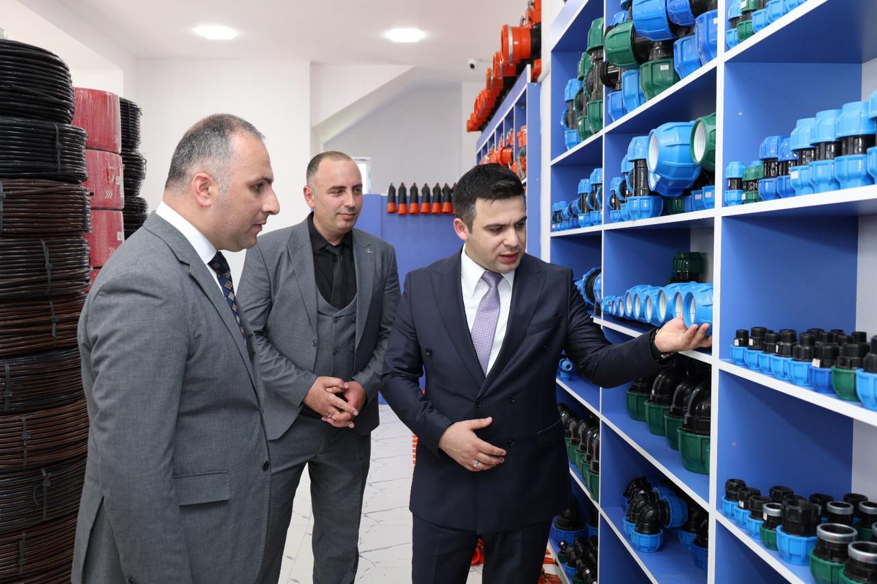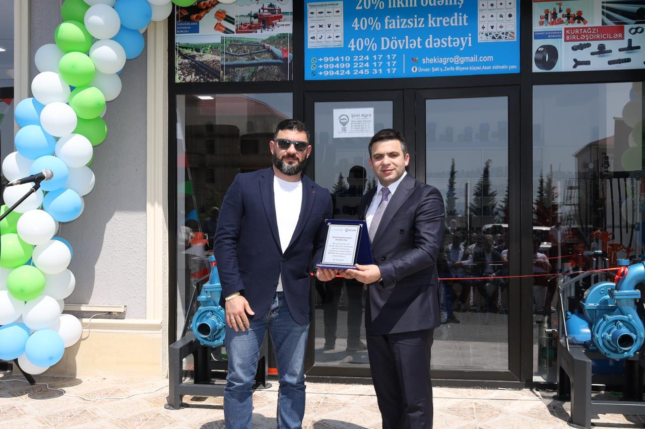 "SHEKI AGRO" MMC-nin təsisçisi Xanoğlan Ramazanov mağazada dünyanın tanınmış şirkətlərinin istehsalı olan damcılama, yağmurlama, avtomatik suvarma və ağıllı gübrələmə sistemlərinin satışda yer aldığını vurğulayıb. O, əlavə edib ki, fermerlər suvarma sistemlərində 20 faiz ilkin ödəniş etməklə Aqrar Kredit və İnkişaf Agentliyinin (AKİA) tədbiq etdiyi alış məbləğinin 40 %-i miqdarında dövlət subsidiyası və geri qalan 40 % -i miqdarında isə faizsiz kreditdən yararlana bilərlər.
