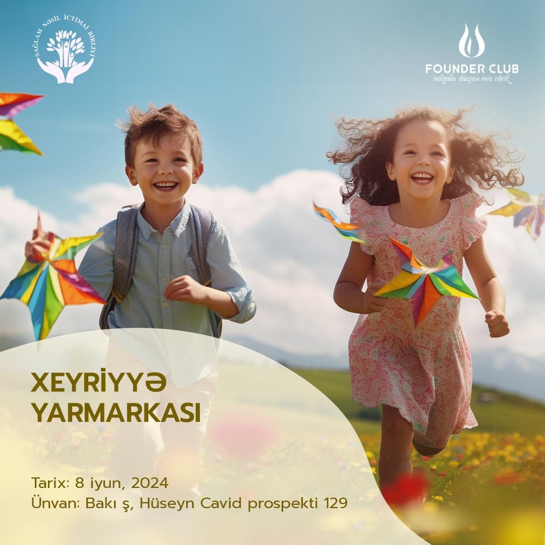 “Founder Club”, Sağlam Nəsil İctimai Birliyi və Azərbaycan Uşaqları İctimai Birliyi ilə birgə sosial layihələr çərçivəsində 8 iyun 2024-cü il tarixində “Bir gülümsəmə ilə dünya, bir yardım ilə həyatlar dəyişər” adı altında Xeyriyyə Yarmarkası həyata keçirəcək.