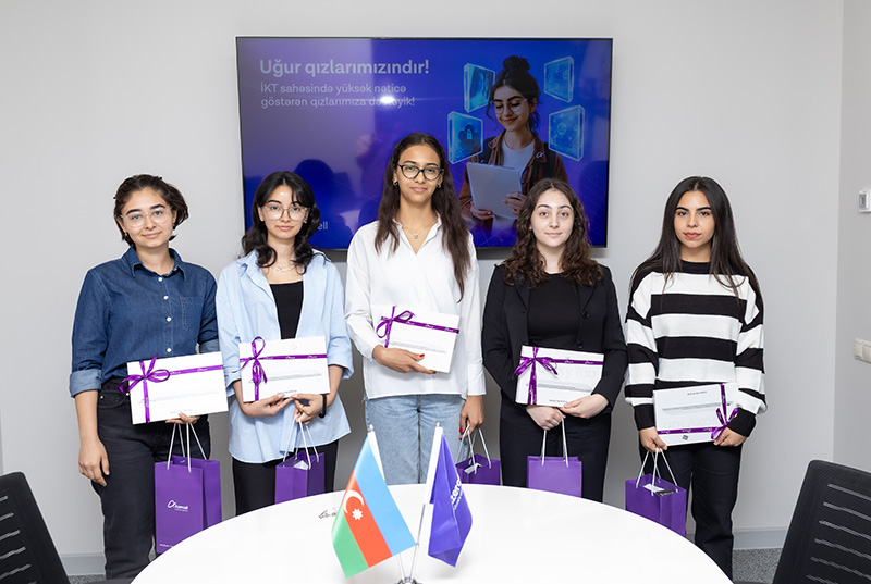 Azercell İT ixtisası üzrə ən yüksək bal toplamış tələbə qızları təbrik etdi