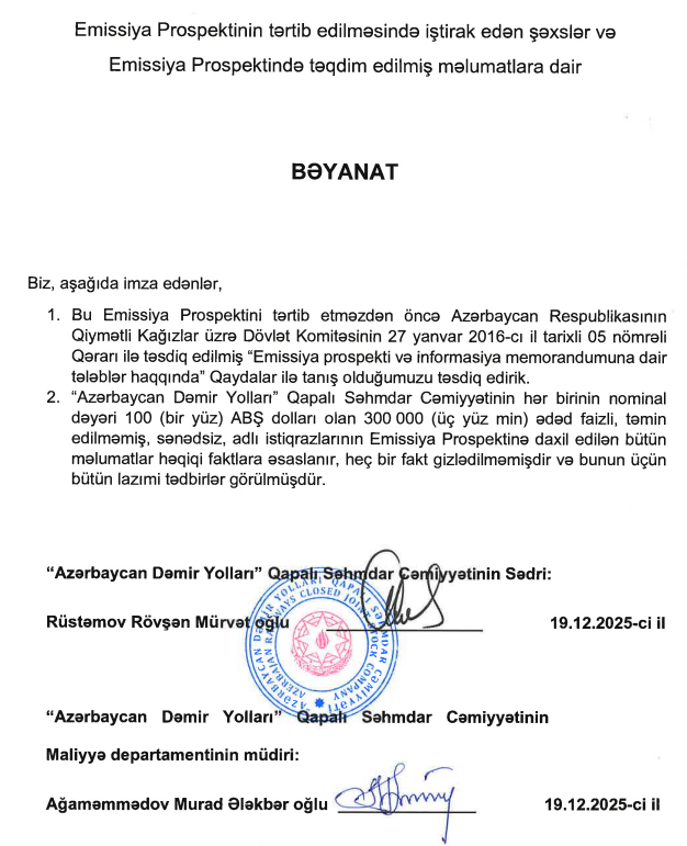 Marja.az Emissiya Prospektinə istinadən xəbər verir ki, dövlət şirkəti hər birinin nominal dəyəri 100 ABŞ dolları olan 300 min ədəd faizli, təmin edilməmiş, sənədsiz, adlı istiqrazlar buraxır.