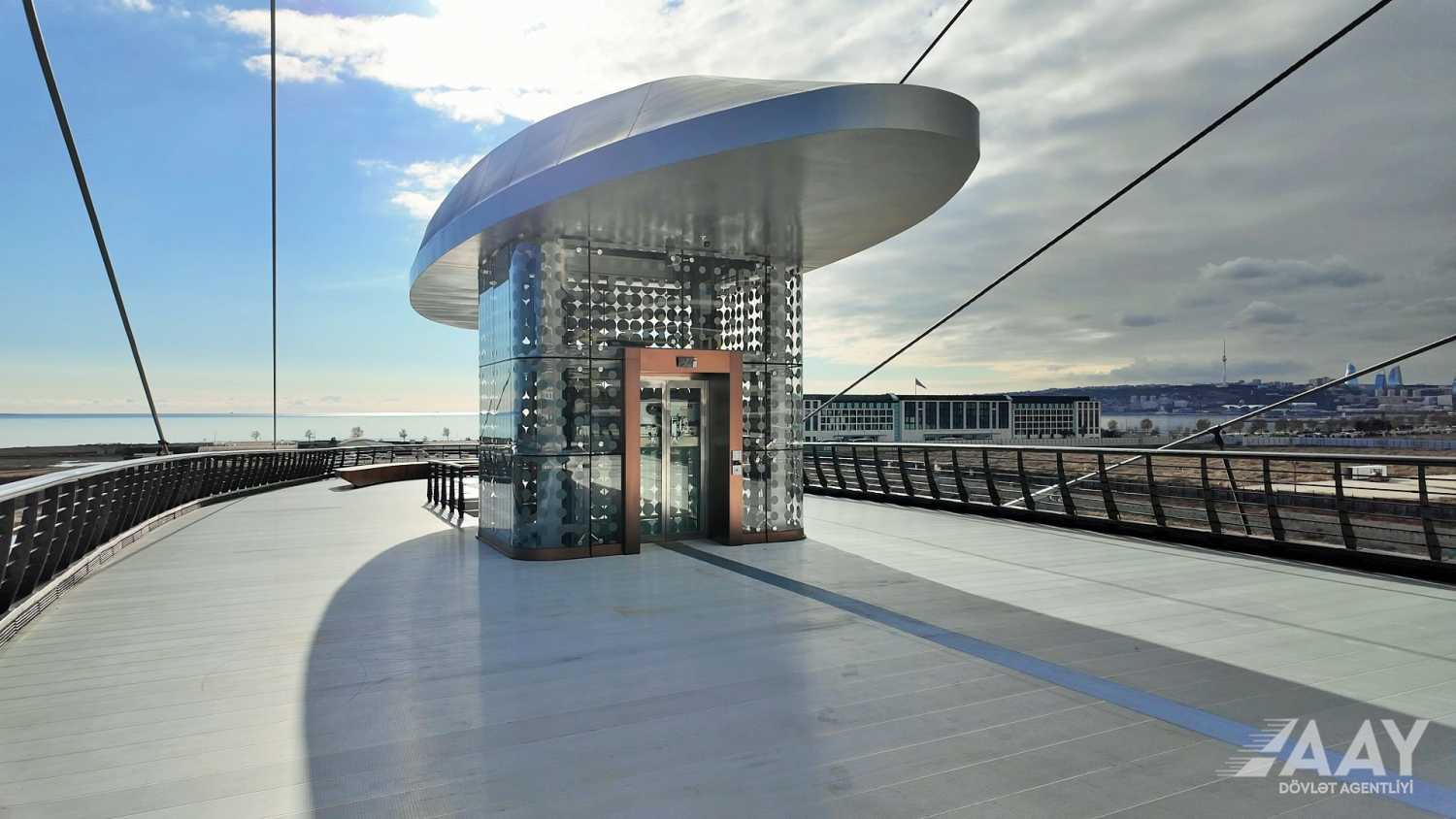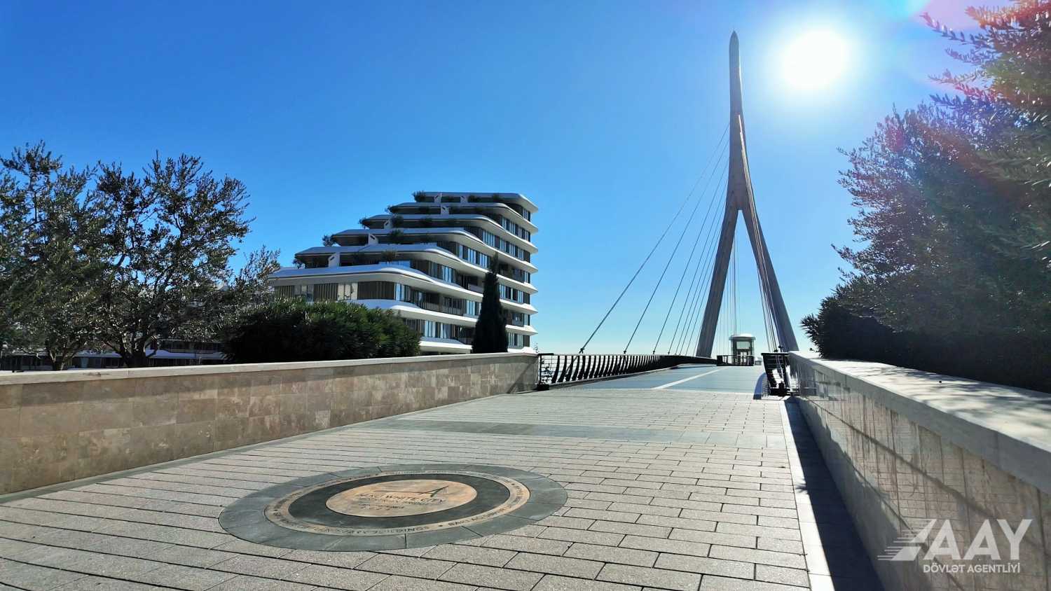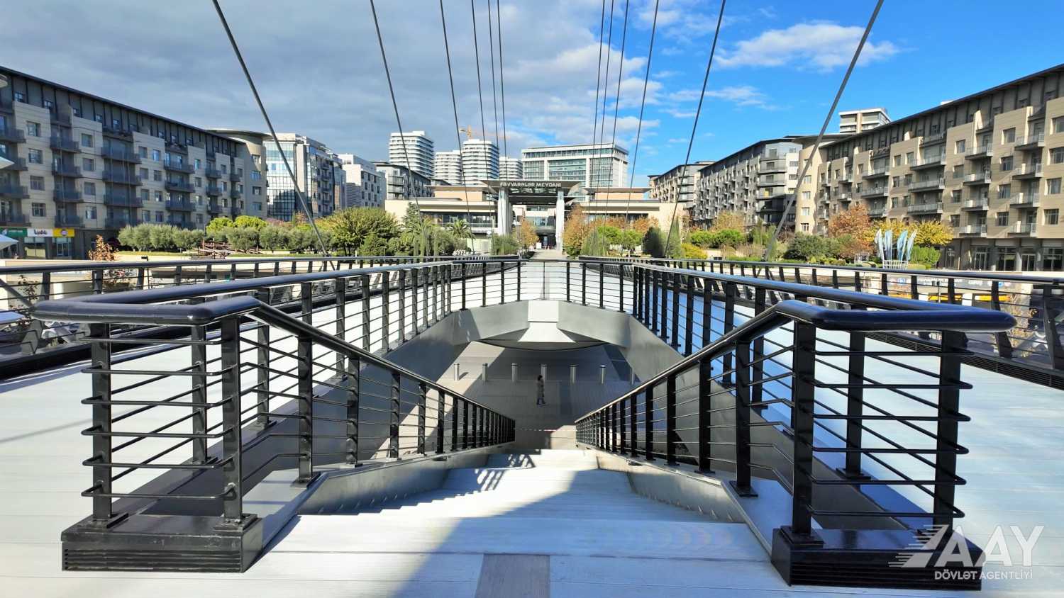 “Bakı Ağ Şəhər” yol infrastrukturunun yenidən qurulması layihəsi çərçivəsində 8 Noyabr prospekti üzərindən Bakı “Ağ Şəhər” layihəsinin Fəvvarələr meydanı parkını və Ağ Şəhər Bulvarını birləşdirən metal konstruksiyalı, müasir arxitekturaya malik yerüstü piyada körpüsü inşa edilib.