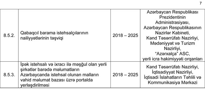 5.0.5. ipəkçilik klasterlərinin inkişafının dəstəklənməsi;