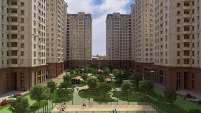 Geniş ərazini əhatə edən, eqzotik ağaclar, yaşıllıqlarla zəngin, iri daxili parka malik kompleksdə 24 saat ərzində çalışacaq mühafizə xidməti, güclü infrastruktur sistemi və üçmərtəbəli yeraltı dayanacaq hesabına “Avtomobilsiz həyət” yaradılıb.