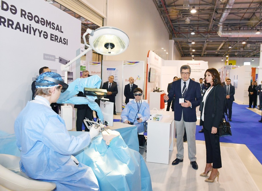 Azərbaycan Respublikasının Prezidenti İlham Əliyev, birinci xanım Mehriban Əliyeva, qızları Leyla Əliyeva və Arzu Əliyeva dekabrın 4-də Bakı Ekspo Mərkəzində XXIV Azərbaycan Beynəlxalq Telekommunikasiya, İnnovasiya və Yüksək Texnologiyalar Sərgisi - “Bakutel-2018” ilə tanış olublar.