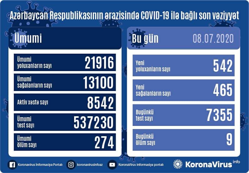 Xatırladaq ki, 07 iyulda 537 yoluxma faktı qeydə alındığı açıqlanmışdı.