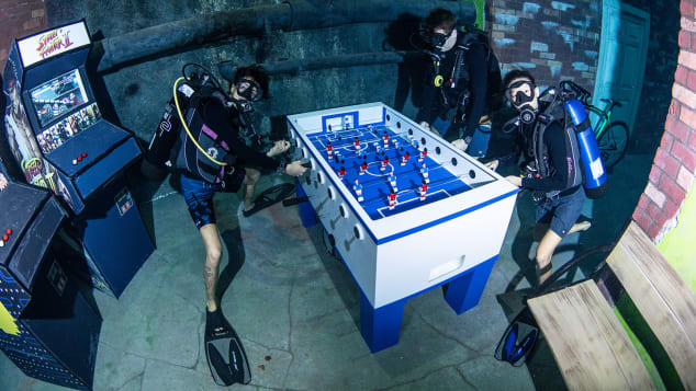 Hovuzun daha bir maraqlı özəlliyi 1500 kvadrat metrlik “batmış şəhər”in daxilində yerləşməsidir. Deep Dive Dubai adlanan, balıqqulağına bənzər nəhəng attraksionun içərisində ən müasir işıqlandırma və səs sistemləri quraşdırılıb, qədim sualtı xarabalıq effektləri yaradılıb. Regionun ən iri sualtı kino studiyası da burda yerləşir.
