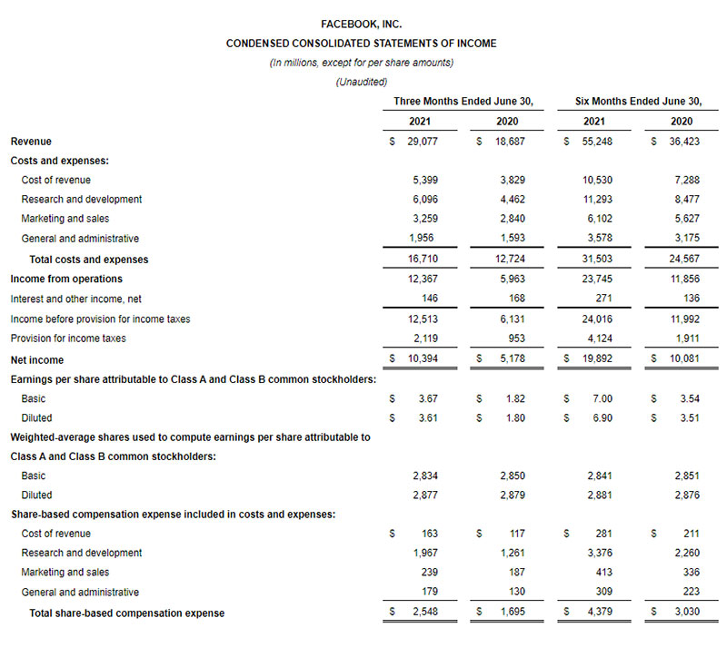 Aylıq toplam istifadəçi sayı 3,5 milyardı keçib....ABŞ-ın 5 texnoloji nəhəngindən biri, ən iri qlobal sosial şəbəkə olan Facebook digər iri şirkətlər kimi cari ilin 2-ci rübünün nəticələrini açıqlayıb.