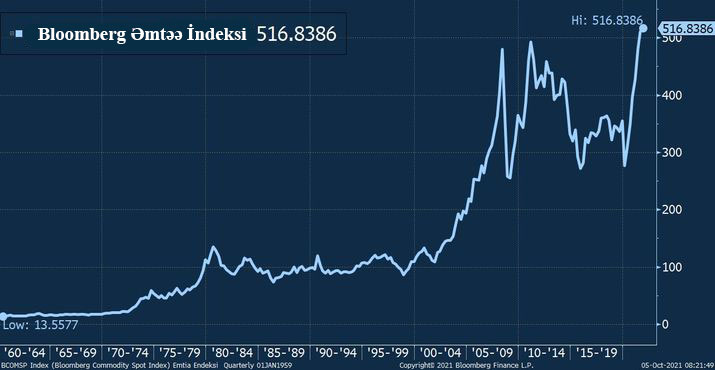 Qlobal bazarlarda artan tələbə qarşılıq xam maddə təklifində yaşanan çətinliklər bir tərəfdən inflyasiyaya dair narahatlıqları artırır, bir tərəfdən də Bloomberg Əmtəə İndeksinin rekordlar qırmasına səbəb olur.