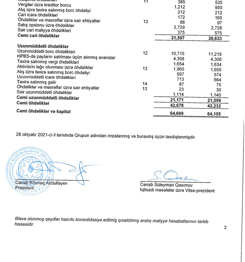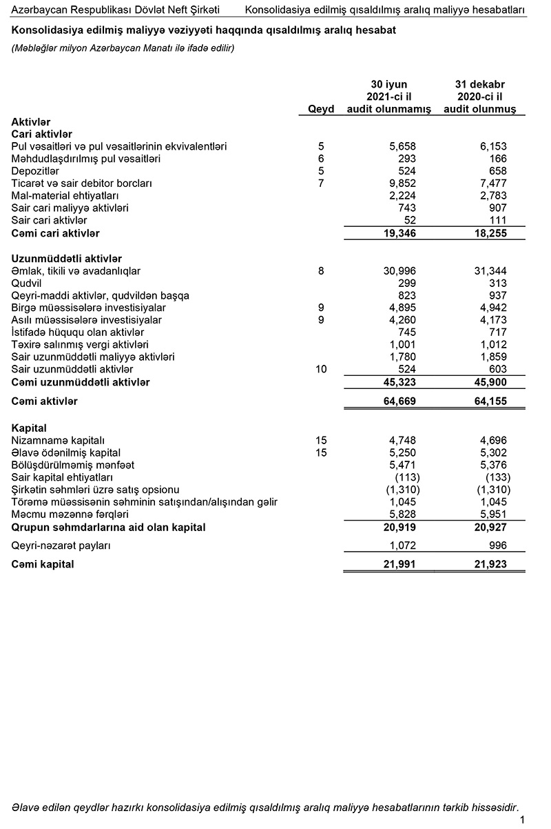 Azərbaycan Respublikası Dövlət Neft Şirkəti (SOCAR) Konsolidasiya edilmiş qısaldılmış aralıq maliyyə hesabatlarını dərc edib.
