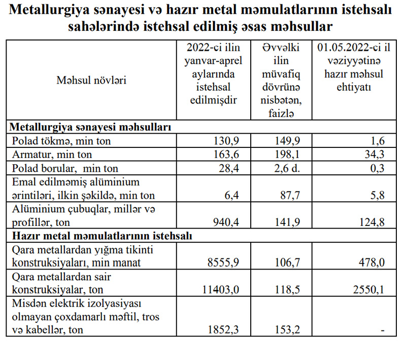 01.05.2022-ci il vəziyyətinə hazır məhsul ehtiyatı 111,7 min ton təşkil edib.