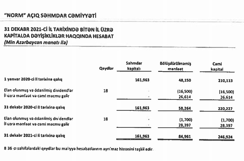31 dekanbr 2021-ci il tarixində ASC 84 milyon 961 min manat bölüşdürülməmiş xalis mənfəətə malik olub.