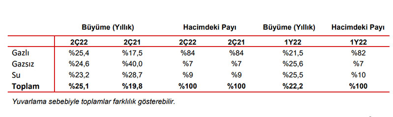 "Coca Cola İçecek", ikinci rübdə güclü satış performansı göstərərək, konsolidə edilmiş satış gəlirlərini 14 milyard 694 milyon TL-yə yüksəldib. Şirkətin satışları rüblük olaraq 152,3 faiz; ilin ilk 6 ayında 144,1 faiz artıb. Beləliklə, 6 aylıq satış gəliri 23 milyard 359 milyon TL-yə çatıb.