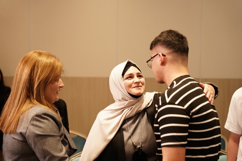 “Əziz analar və bacılar, şəhidlərimizin bizə əmanəti olan dəyərli tələbələrimizi Zəfər Günündə sizlərlə burada görüşdürmək, bu böyük günü sizli-bizli birlikdə qeyd etməyi düşündük. Çox sağ olun ki, bizim bu təklifimizi qəbul etdiniz, övladlarınıza sürpriz edərək buraya - onların görüşünə gəldiniz”.