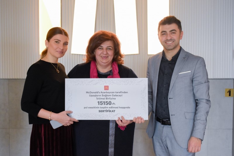 “Uşaqların Sağlam Gələcəyi” İctimai Birliyi mərkəzinin sakini olan balacalar dekabrın 1-də “McDonald's Azərbaycan” restoranlarından birinə dəvət olunub, orada dadlı yeməklərdən dadaraq əyləniblər. Görüşdə mərkəzin nümayəndəsinə aksiya zamanı toplanan məbləğin əks olunduğu sertifikat təqdim olunub.