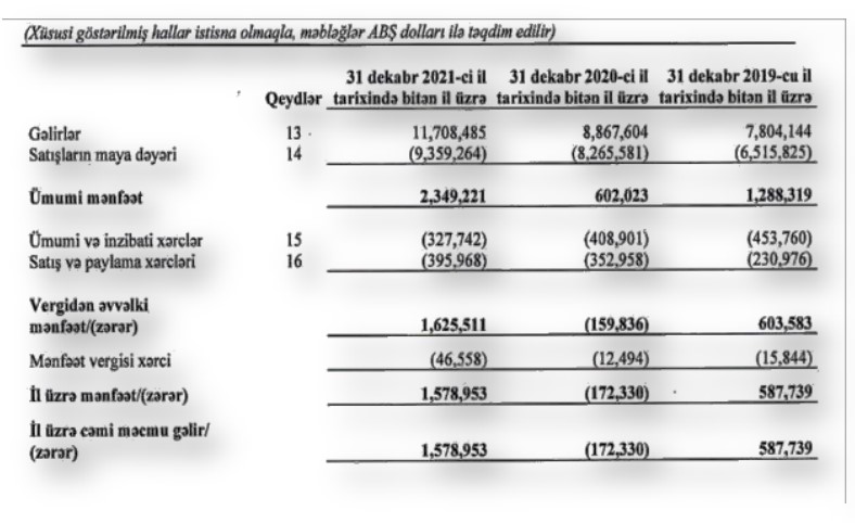 Marja.az xəbər verir ki, şirkət 2020-ci ildə 8 milyon 868 min dollar gəlir əldə etsə də ili 172 min dollar xalis zərər ilə bağlamışdı.