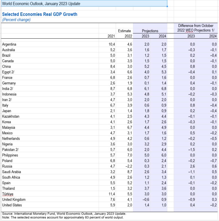 Qlobal iqtisadiyyat üçün BVF 2024-cü ildə 3,1% artım gözləyir ki, bu da ötən ilin oktyabrından 0,1 faiz bəndi daha pisdir. 2023-cü ildə 2,9% artım gözlənilir ki, bu da oktyabr ayı proqnozundan 0,2 faiz bəndi yaxşıdır.