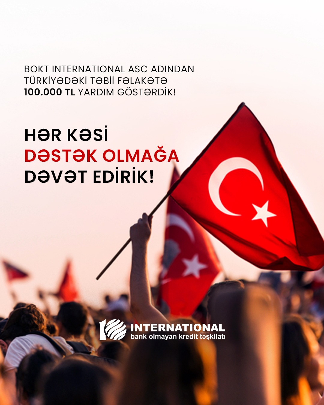 "BOKT "İNTERNATİONAL" ASC rəhbərliyi və bütün əməkdaşları adından Türkiyədə baş vermiş güclü zəlzələlər nəticəsində həlak olanların ailələrinə və yaxınlarına dərin hüznlə başsağlığı verir, yaralananlara şəfa diləyirik. Dualarımızla hər zaman sizinləyik. Başın sağ olsun, Türkiyə!",- məlumatda deyilir.