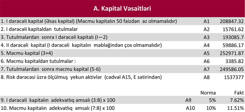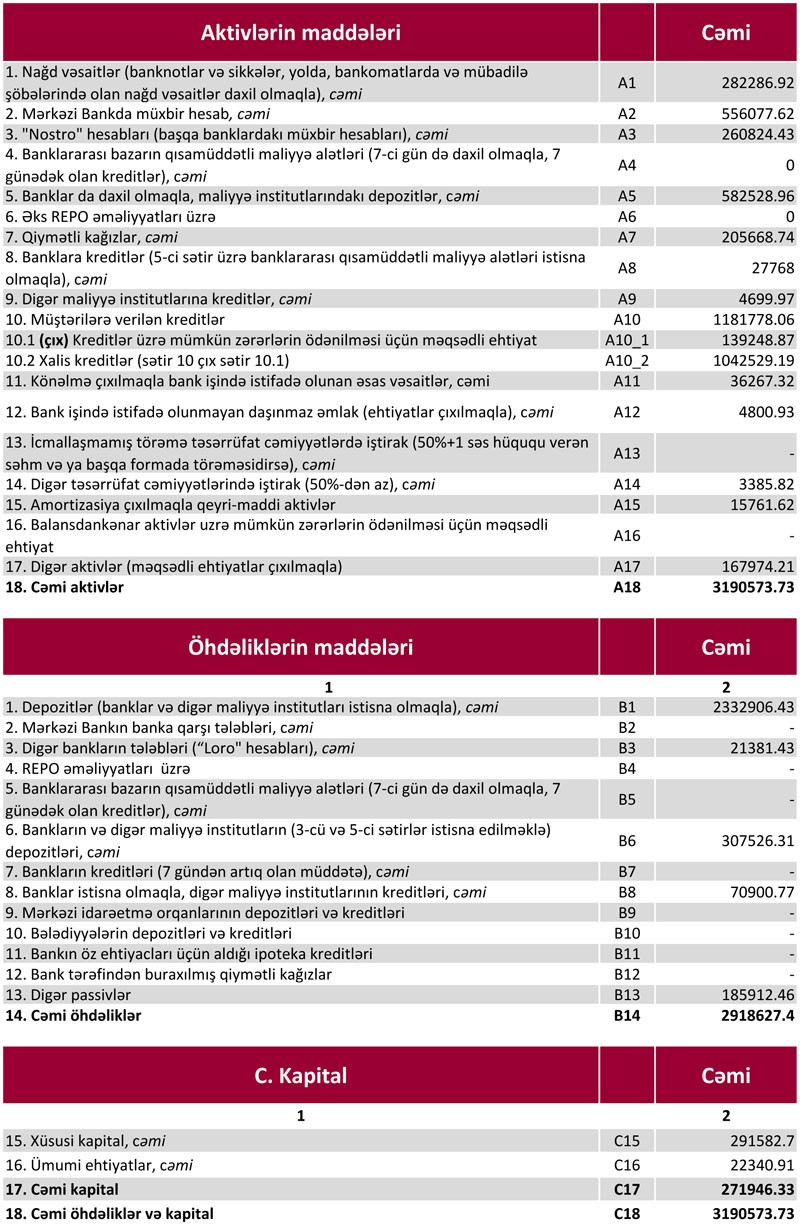 Ötən ilin sonu ilə müqayisədə Bankın kredit portfeli 1 milyard 203 milyon manatdan 1 milyard 181 milyon manata gerilyəb, depozit portfeli isə 2 milyard 10 milyon manatdan 2 milyard 332 milyon manata qalxıb.